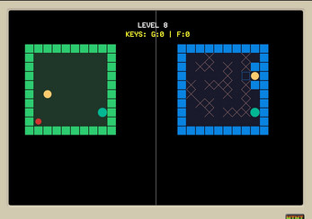 Open the door: First, move the character from the Past to the lower left corner to the button🔴 to open the door for the character from the Future, who is locked at the start.